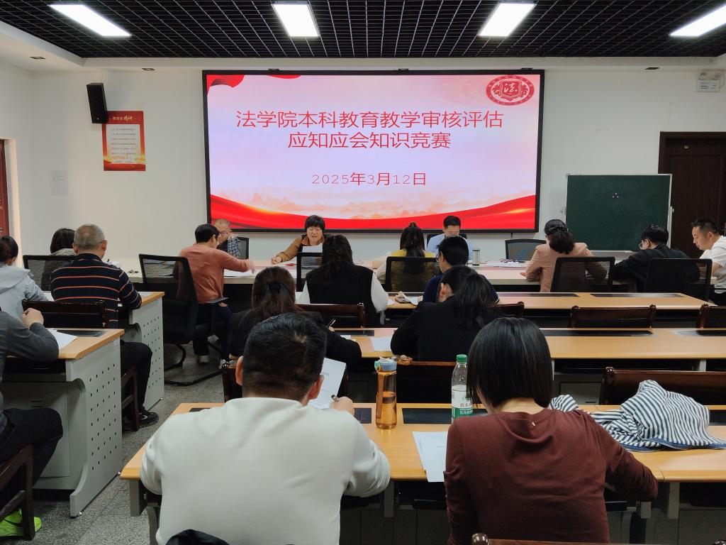 为深入贯彻学校关于普通高校本科教育教学审核评估工作的部署要求,扎实推进迎评促建工作,3月12日—19日,法学院组织全体教师开展《应知应会》手册专题学习、审核评估知识竞赛及专任教师模拟访谈座谈系列活动,进一步统一思想、凝聚共识,以扎实行动迎接本科教育教学审核评估。