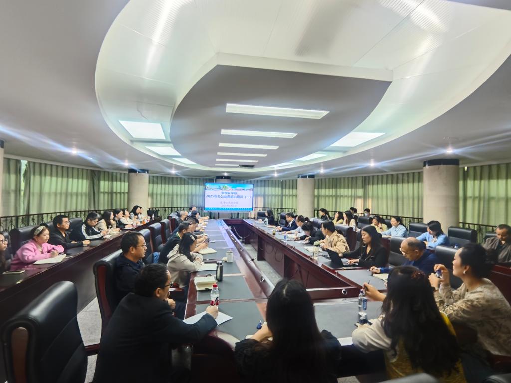 为加强全校办公室系统队伍建设,强化办公室系统人员写作、会务工作等业务能力,促进校院两级办公室业务协同联动,4月3日上午,由党政办牵头,2025年第一期办公业务能力培训在弘毅楼300室举行,各单位综合科、办公室负责人50余人参加培训。