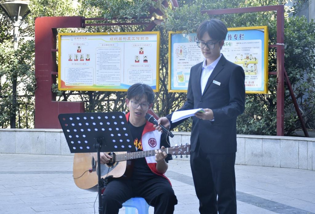 周云乐与曾一曼以相声《国安那些事儿》,用幽默对话将《国家安全法》知识巧妙化用,让居民明晰日常国家安全的关键要点,实现法治知识的通俗转化。杨俊贤的脱口秀《间谍听了都想转行》,以独特的视角和风趣的语言,深入剖析间谍行为的危害。曾雨欣等七位同学带来的舞蹈《星护万家》生动诠释了国家安全与百姓生活的紧密联系。宣讲团讲师们带来歌曲《我爱你中国》歌唱对祖国的热爱与赞美。