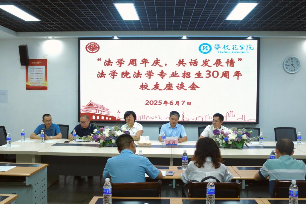 6月7日下午,法学院法学专业招生三十周年系列活动正式拉开帷幕。首场活动是在凌云楼3-1会议室召开的以“法学周年庆,共话发展情”为主题的校友座谈会。学校副校长王兵、招就处副处长王平,法学院校友会会长李明华,法学院领导班子及部分校友代表、法学专业教师齐聚一堂,共同回顾学院发展历程,共话未来发展蓝图。会议由法学院党委副书记、纪委书记张波主持。法学院党委书记张琳致辞,向远道而来的校友们表示热烈欢迎和衷心感谢,回顾了法学院30年来的办学历程,对校友们在各自领域取得的优异成绩表示由衷欣慰,同时也对学院未来的发展寄予殷切期望。王兵向与会人员详细介绍了学校的基本情况,包括学校从诞生之初的筚路蓝缕到如今不断发展壮大所取得的一系列成绩,并着重强调了学校的四个鲜明特点。最后,他对校友们送上美好祝愿。在自由交流环节,参会校友依次发言,分享了各自目前的工作职务与职业成就,回忆起在学校求学时的点点滴滴,言语间满是对母校的眷恋与感恩。会议最后,学院向校友们赠送了法学院 30 周年庆纪念品,全体参会人员合影留念。