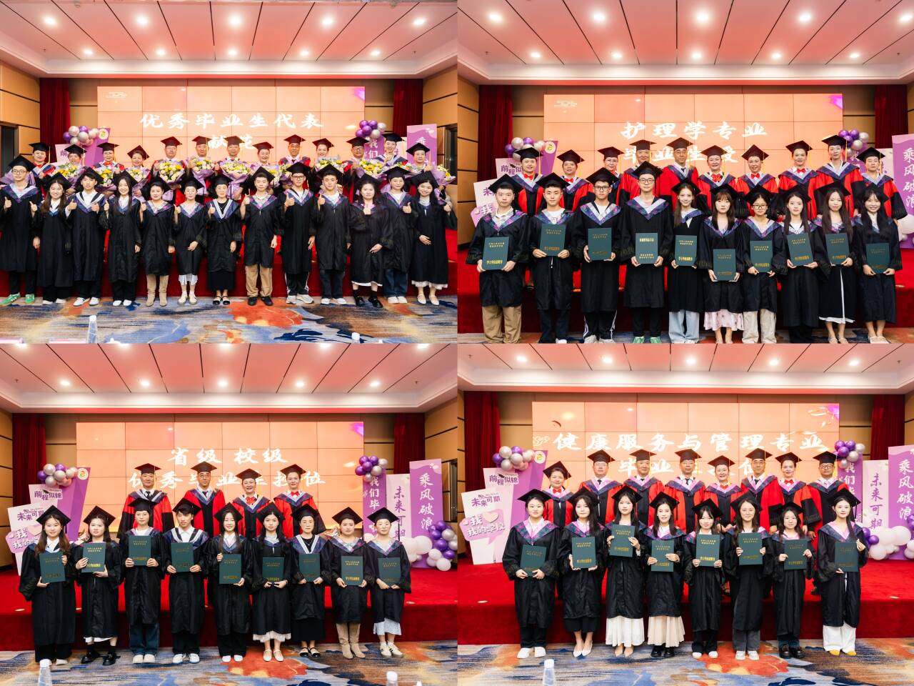 在授位环节,省级与校级优秀毕业生代表、护理学专业和健康服务与管理专业的105名毕业生依次登台。授位导师们郑重地为每一位毕业生拨穗、授位,这不仅是对学子们学业有成的见证,更是康养学院精神传承与未来期许的传递。