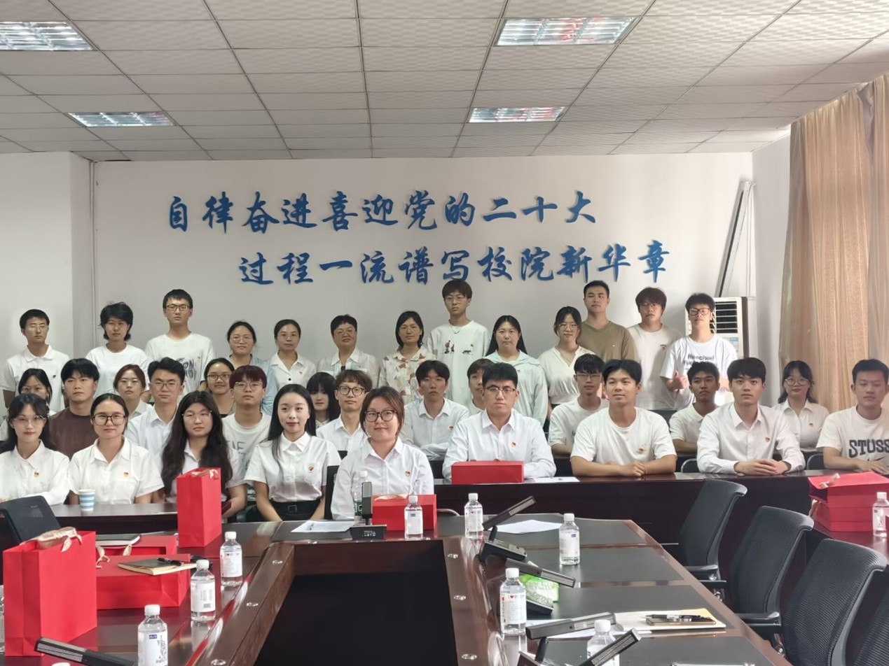 学院领导为毕业生党员精心准备了专属纪念品,以此传递对学子们的深切祝福与殷切期许。毕业生党员与学院领导亲切合影,留下珍贵瞬间。随后,在党支部书记王婷老师的带领下,重温入党誓词,这不仅是对入党初心的深情回溯,更是对未来人生征程的庄严承诺,激励着他们以坚定的信念投身于新的奋斗征程。