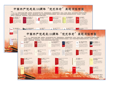 为做好此次书目推荐,图书馆选购了权威出版社出版的重点红色资源。书目来源既有纸质图书又有电子图书,满足广大师生不同形式阅读的需要书目选择主题鲜明、内容广泛、导向明确,包涵了解读中国共产党史、新中国史、改革开放史、社会主义发展史的诸多重要著作,具有很强的政治性、历史性和知识性。同时,此次书目发布采取宣传展板、官网主页、企业微信、QQ社群等多媒体和多平台同步推出,营造浓厚的党史学习和研究氛围。