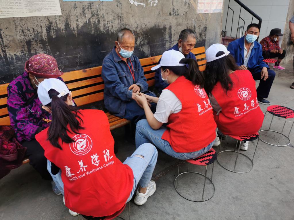 由教师党员、学生党员和“康养少年”志愿者组成的志愿者服务队为孤寡老人、失能失智老人等开展义诊、咨询、艾灸、按摩、测血压等服务,给敬老院工作人员普及心肺复苏术及相关知识与技能。“康养少年”志愿者还精心准备了诗词《沁园春·长沙》与老人中的党员们一起学党史,温习毛泽东诗词,为敬老院的老人们带来关心与温暖,深受敬老院老人的欢迎和工作人员的称赞。