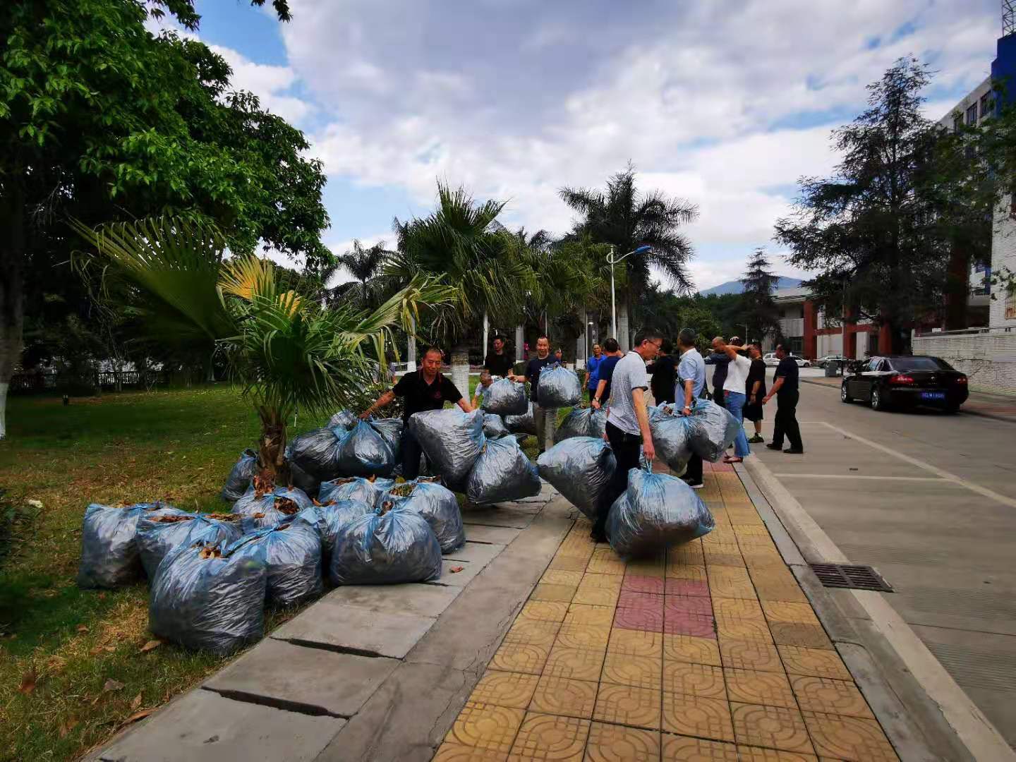 在第一教学楼前,党员同志们或捡拾,或装运,不一会儿就清除了数十袋枯枝落叶。清除过程中,全体人员不惧烈日当空,齐心协力,充分发挥党员和公职人员带头示范作用,用实际行动展现了“自律后勤人”重整行装再出发的新面貌。活动不仅有效消除了火灾隐患,还改善了后勤内部环境,为党员们创造了良好的沟通条件,更让党员们在集体劳动中,体会到团队协作的乐趣以及安全工作的重要性,为决胜攀枝花防火期提供了坚实的安全保障。
