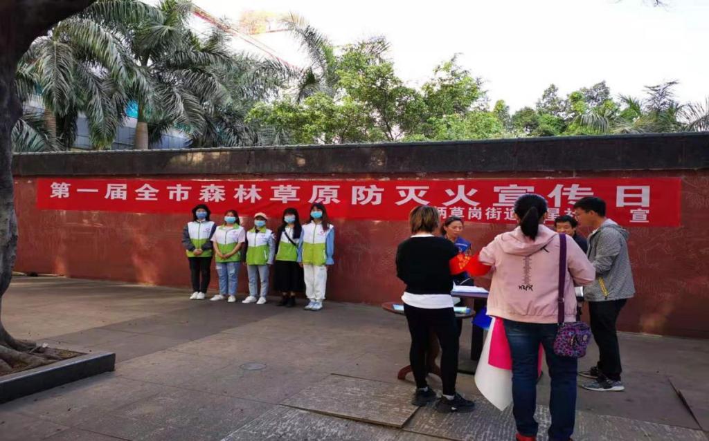 3月12日上午,我校学生志愿服务大队智能制造志愿服务站和炳草岗街道红星社区工作人员一起宣传森林防火知识。