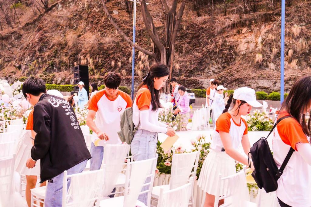 传递每份爱,点燃颗颗心。3月21我校青年志愿者前往“两江三桥”三线文化景观处为首届青年集体婚礼提供志愿服务。为塑造良好的志愿者形象,前期在我校选取数十名志愿者参与志愿培训。志愿者们在市团委老师的带领下进行培训与实操,从仪容仪表、手势、坐姿、站姿、走姿等各方面进行详细指导和规范学习。活动现场,志愿者们分组完成志愿引导。活动主要展开方式为帮助参与婚礼的新人保管随身物品,协助布置活动现场座位,全程陪同新人以供所需。本次活动的开展弘扬“志愿精神”,树立学习文明节俭的社会主义新风尚,进一步深化志愿服务影响力。
