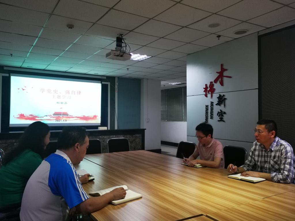 4月9日下午,科管办全体职工4人(含3名党员及1名民主党派人士)在孵化园1楼大厅开展“学党史 强自律”主题学习活动。活动主体内容为集中收看《党史100讲》节选视频,并进行交流讨论。