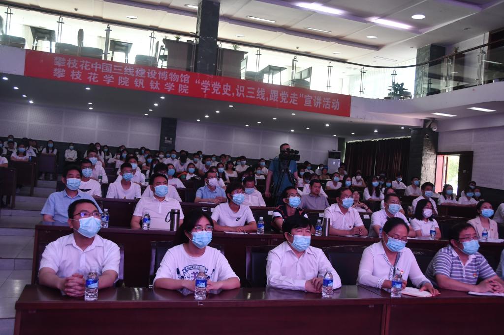 4月21日下午,钒钛学院在图书馆二楼学术报告厅开展以“学党史 识三线 跟党走”为主题的党史学习教育攀枝花中国三线建设博物馆讲解员及社教组长赵宇担任主讲人,学院领导、师生党员、积极分子、团学干部等200余人参与活动。同时攀枝花手机台同步直播,在线观看及参与人数达16.1万人。