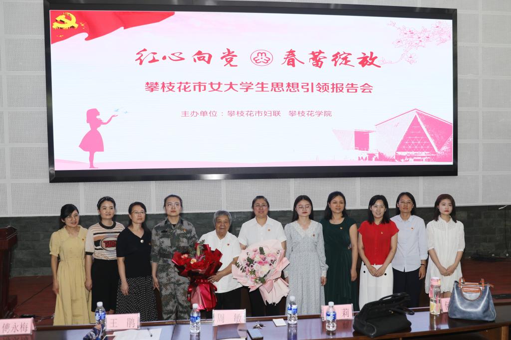 428日下午,我校和市妇联联合举办的“红心向党 春蕾绽放”女大学生思想引领报告会在学校学术报告厅开展。攀枝花市妇联党组成员、副主席王莉,市妇联挂职副主席李丹丹,校工会及团委相关负责人、学200余名女生代表参加了报告会。